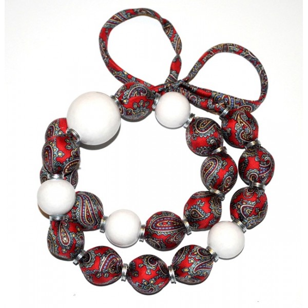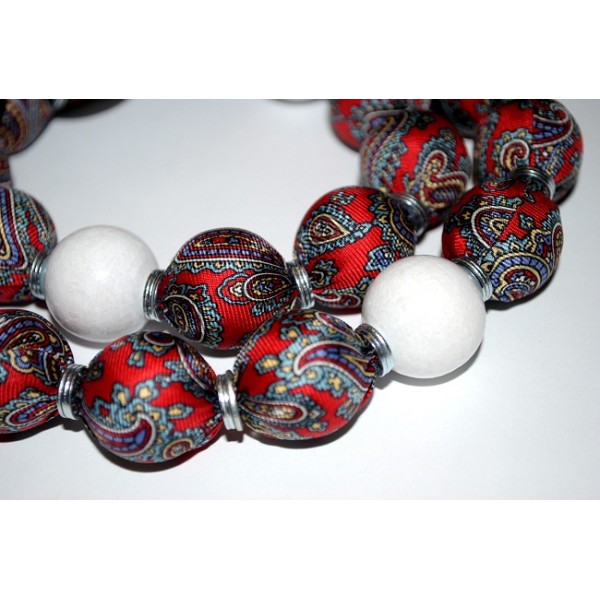 "Sotera" Fabric Wrapped Beaded Necklace - Handmade