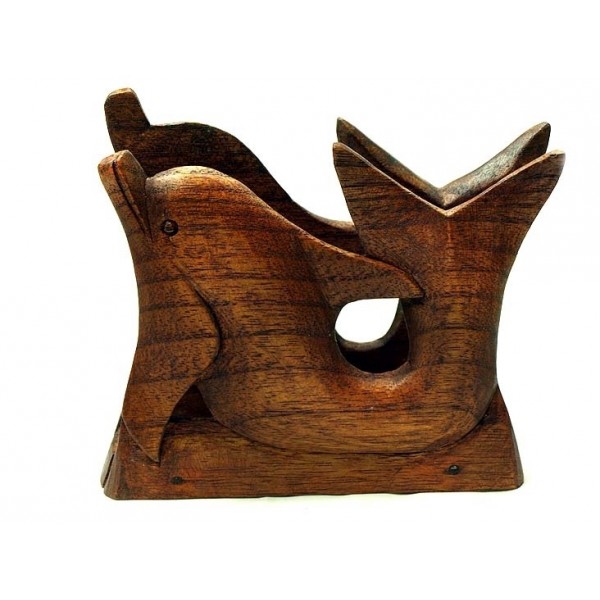 * wooded napkin holder * handmade and hand carved napkin holder * 100 % handmade * dolphin shape* Dimensions: 13cm x 5cm x 15cm